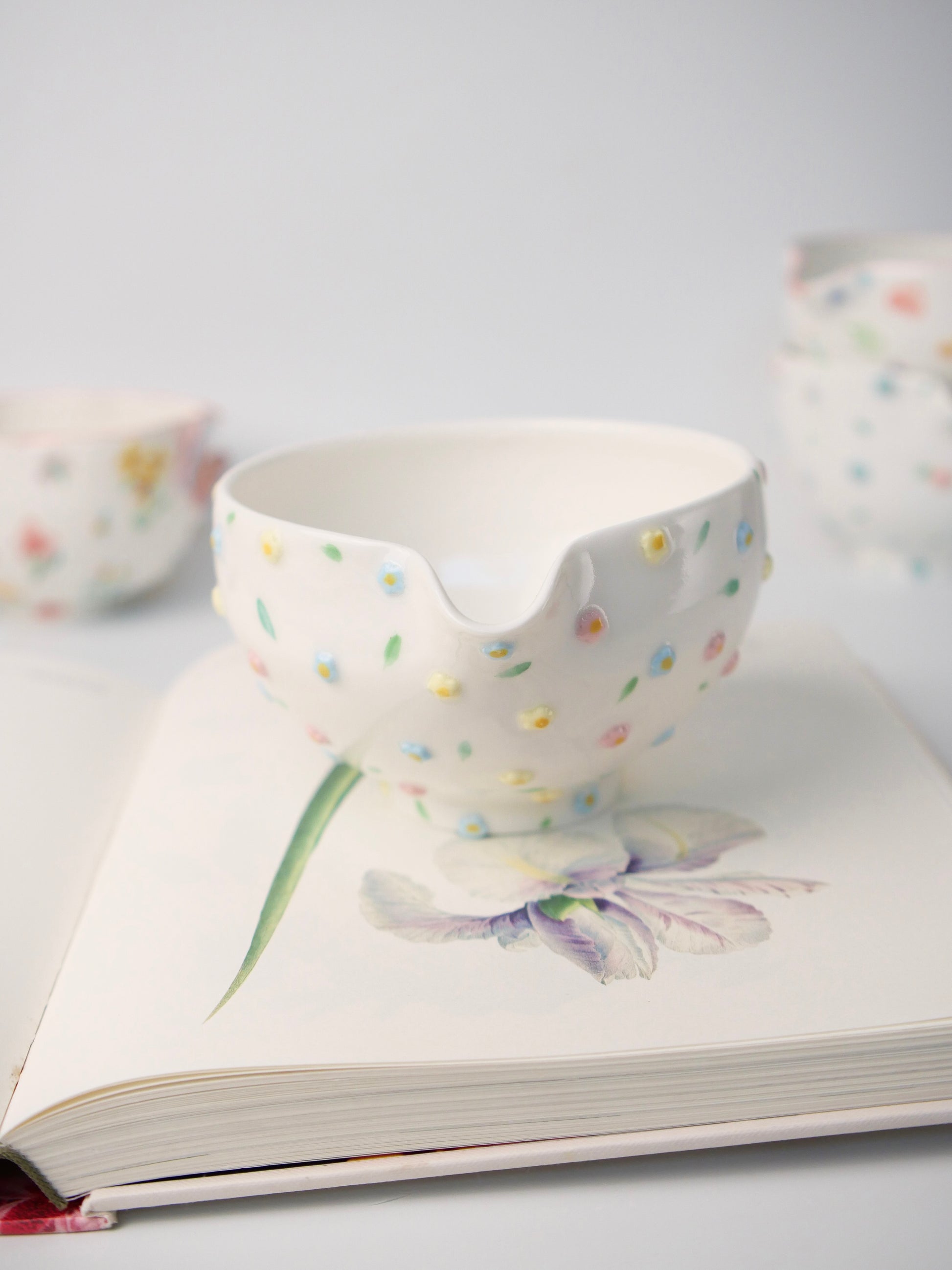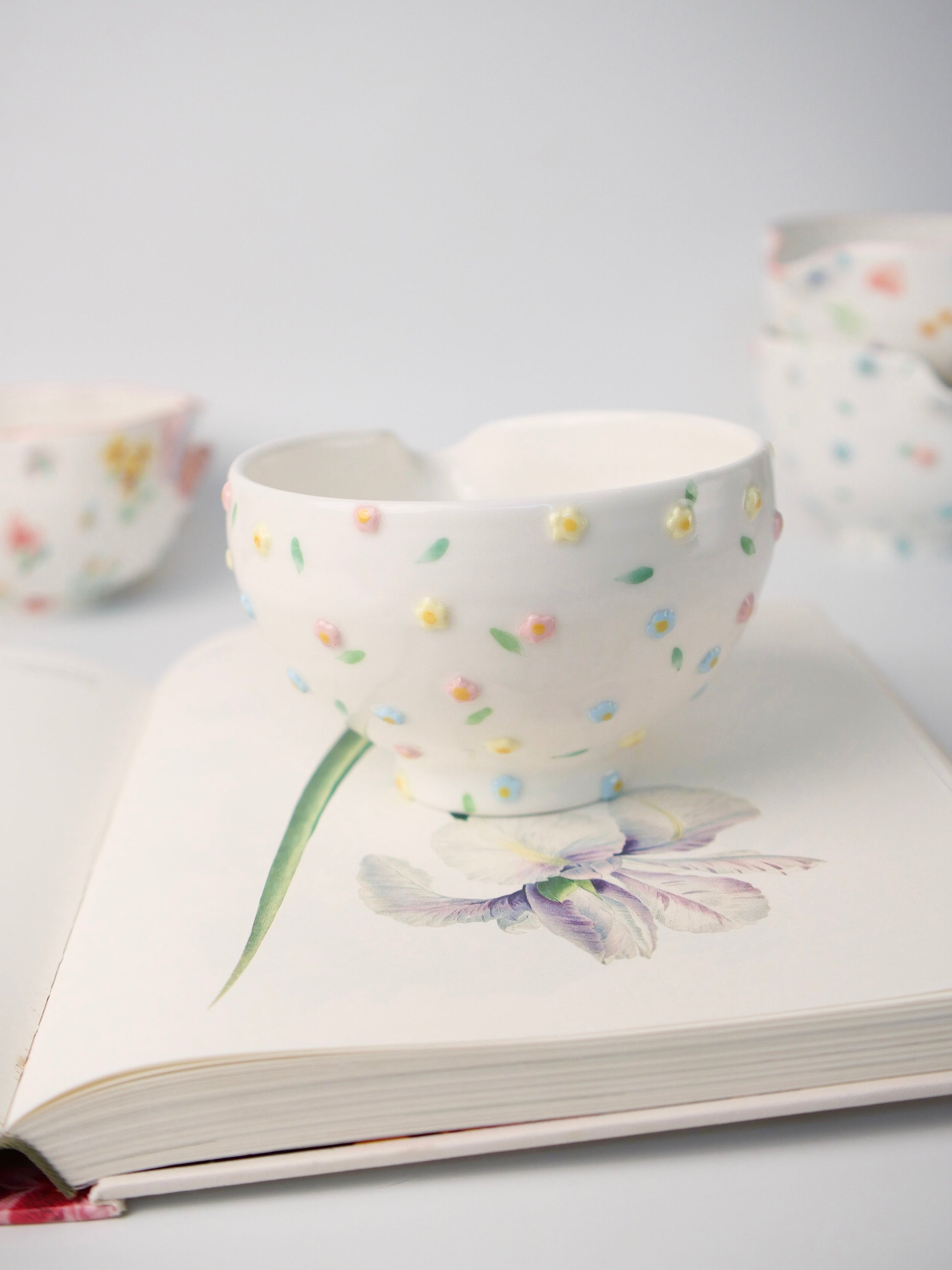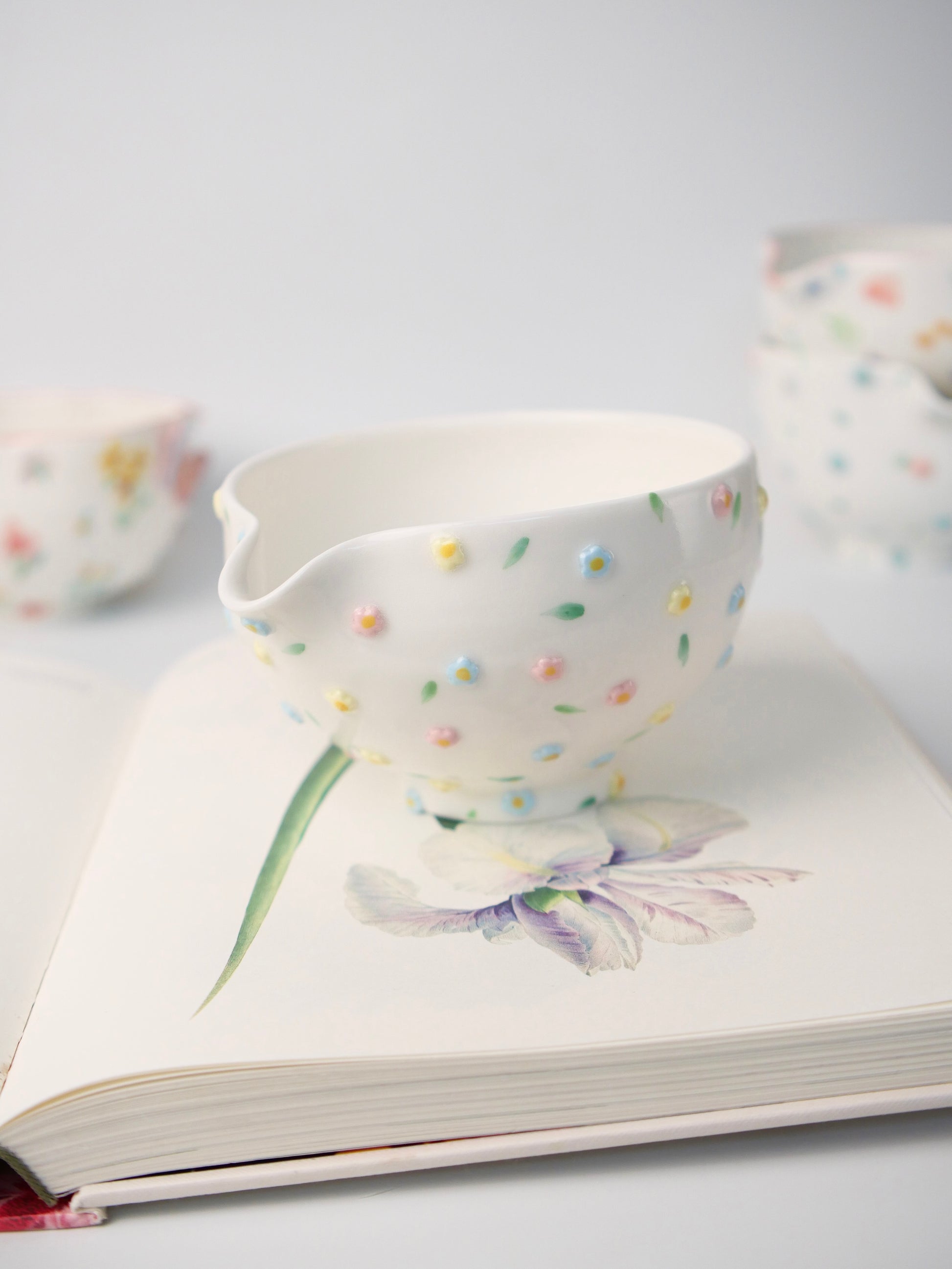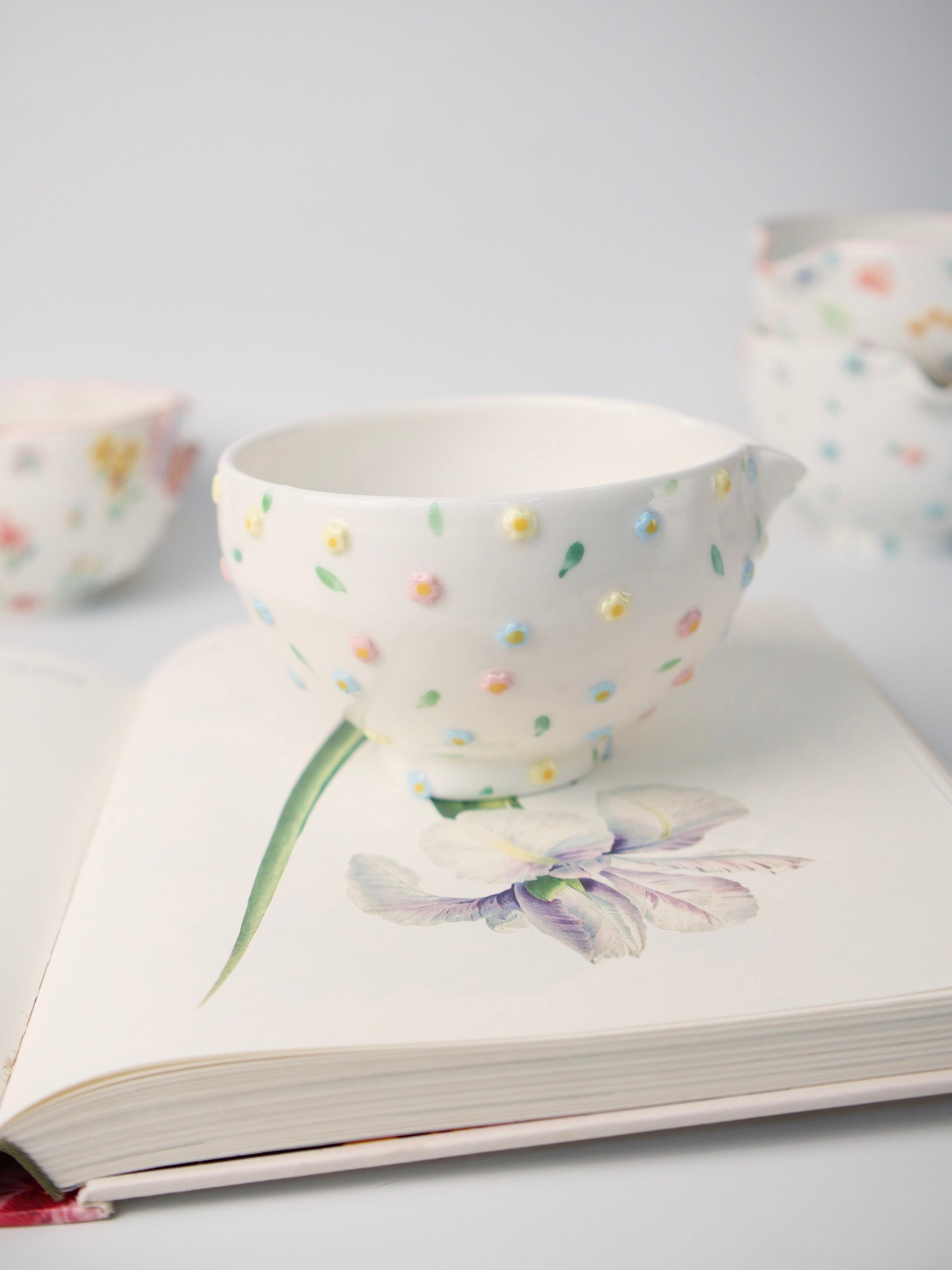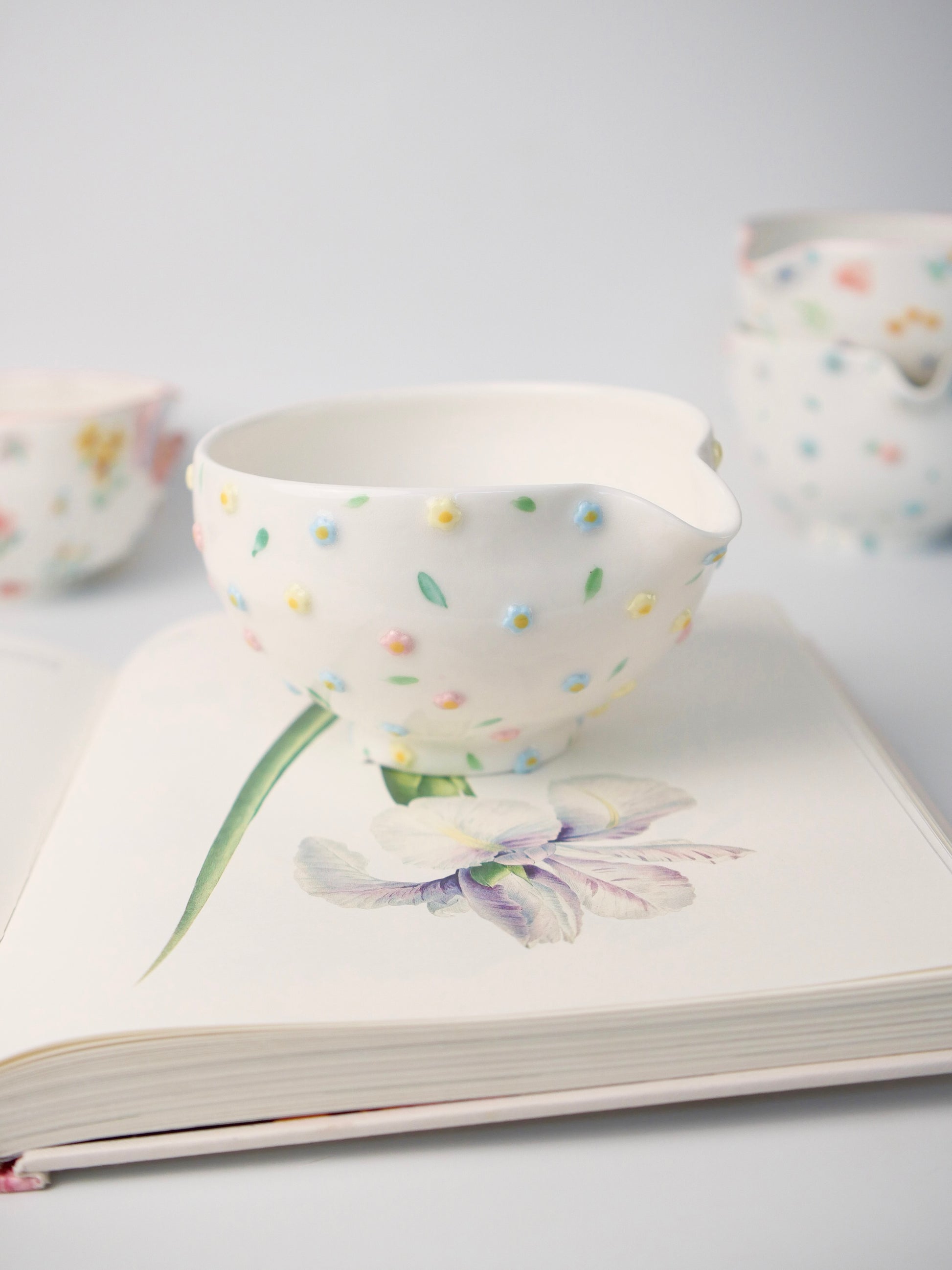 The hand painted underglaze captures the delicate beauty of flowers